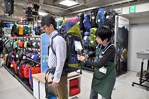バックパックを購入する際に、店頭でフィールドでのバックパックの重さを体感するための「おもり」を備えたのが、ドイター・フィットセンターです。