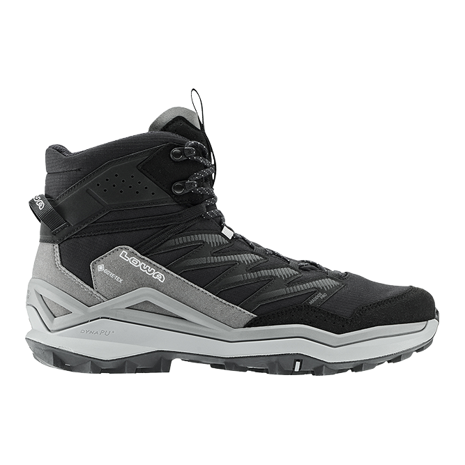 サイド部分の立ち上がりをさらに高くし、よりハードな環境でも足をしっかと包み込む構造です。立ち上がりの部分はやや硬めの素材を採用しており、これはLOWA独自のダブルインジェクション製法によって実現されます。